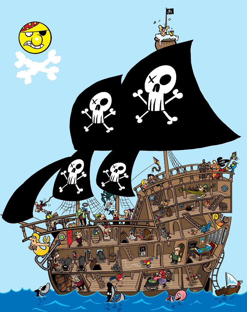 Escape the Pirate Ship was a illustration for a children's inflight magazine to keep them amused. Lot's of little jokes in the maze if you take a look. A joy to work on.